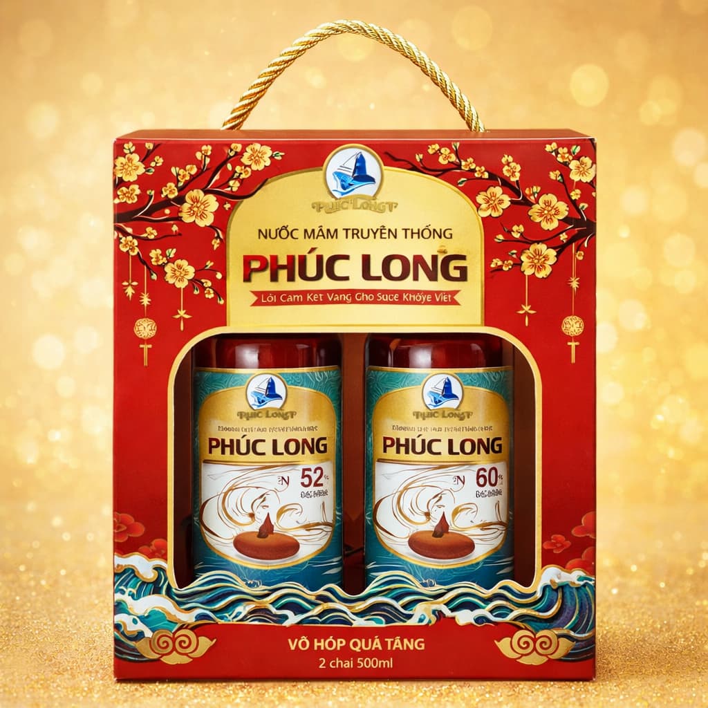Vỏ hộp quà 2 chai 500ml mẫu 01 được thiết kế với tông màu sang trọng, họa tiết truyền thống và tay xách chắc chắn, phù hợp làm quà biếu trong các dịp lễ, Tết hoặc sự kiện.